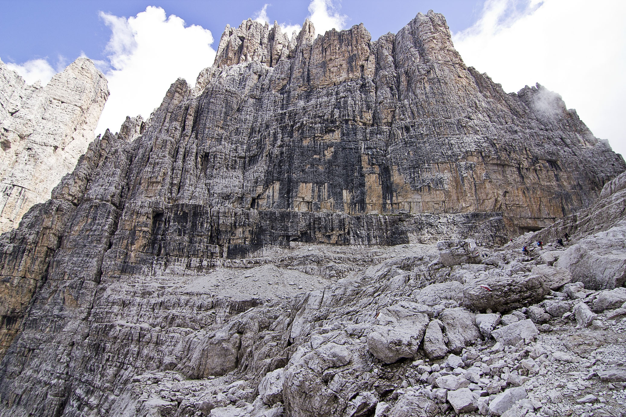 It’s hard to make out, but right in the middle of this gigantic mountain face there is a path that takes us around and on the other side of it. The close up on the second photo shows you how insignificant we are in comparison to nature.