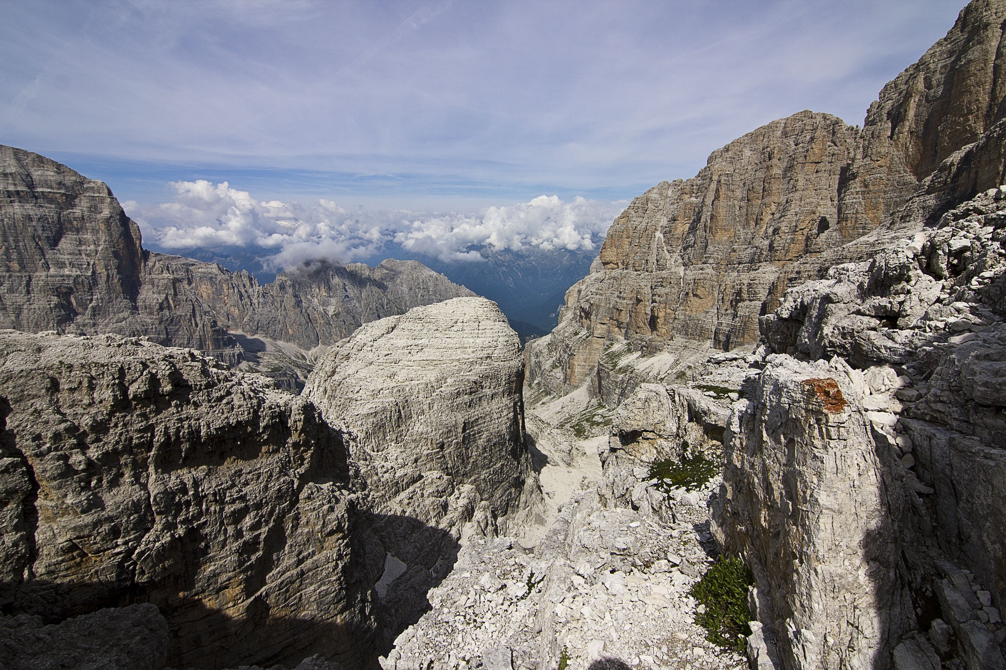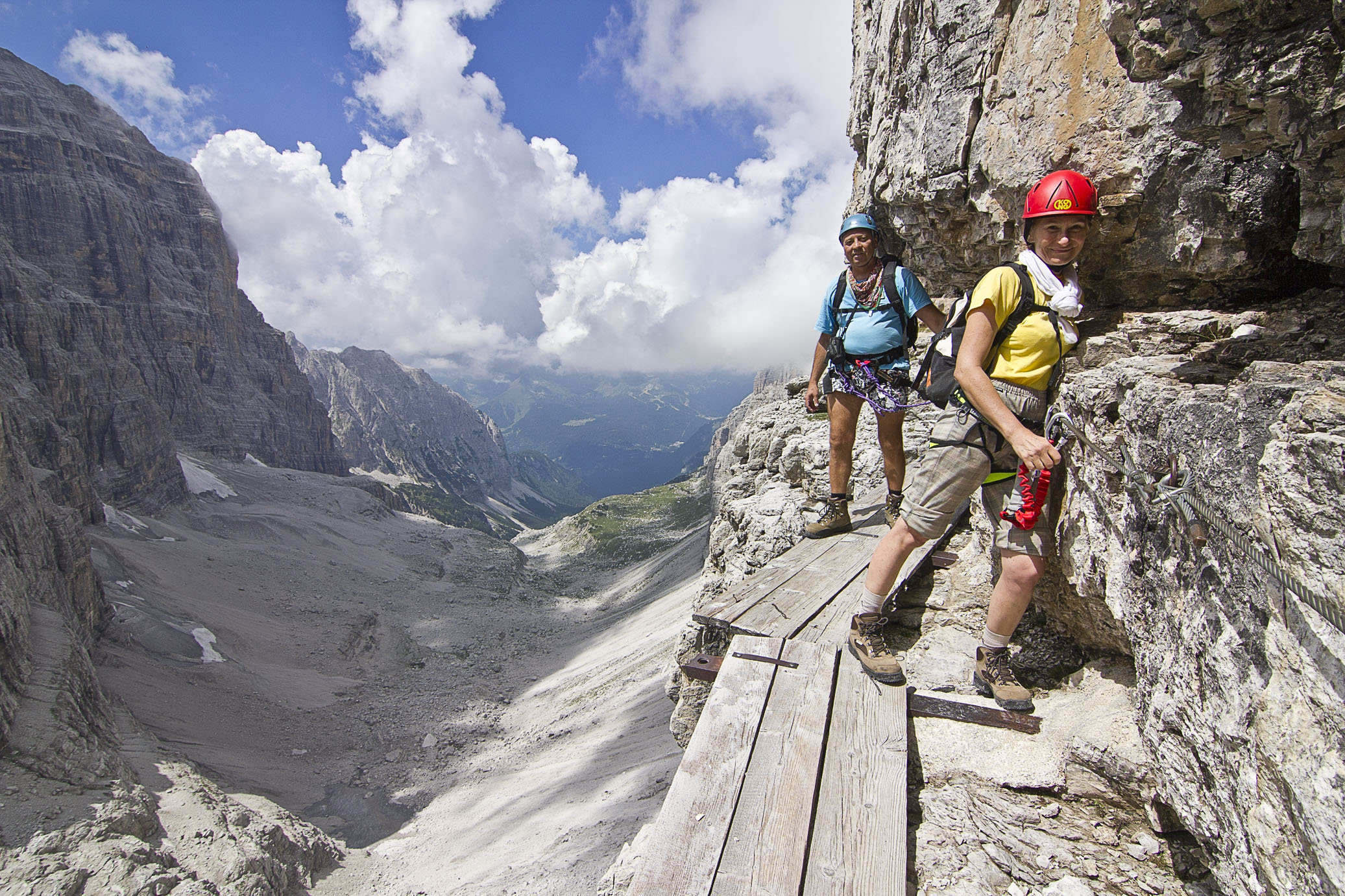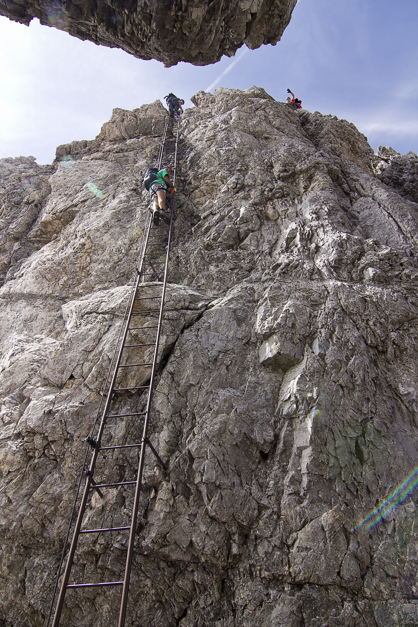 Almost at the top of that climb (at nearly 3,000m), the spectacular view below us made it worth it. That morning we started trekking from somewhere in the valley, beyond that giant cliff in the center, and we weren’t even half-way done with the via ferrata.