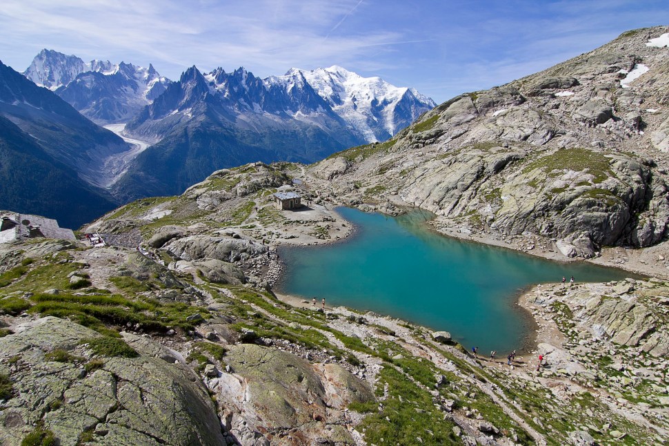 I was tempted to try a dive from this ledge, but it seemed too crazy even for my standards 😉 This is the second and larger part of the lake that is further away from Mont Blanc.