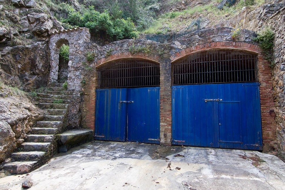 Hidden boat garages, impossible to see unless you go down to the water level… pretty neat.