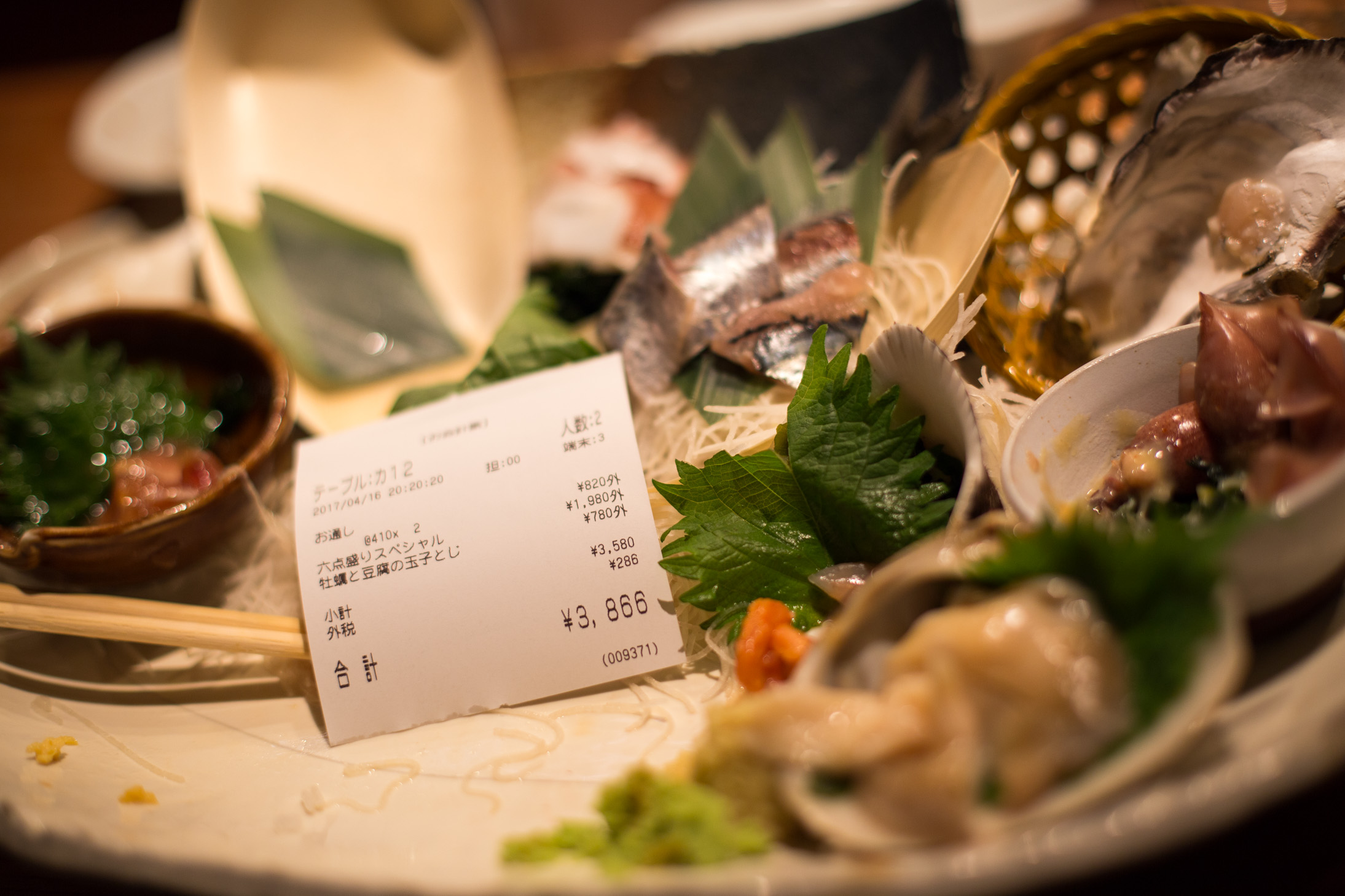 Japan is where I ate both the most expensive and the cheapest sushi. In this case I forgot to take a photo before, but this was a gigantic platter of sashimi (which looked like it was for at least 4 people) that along with two other smaller dishes we ordered cost around €32… crazy.