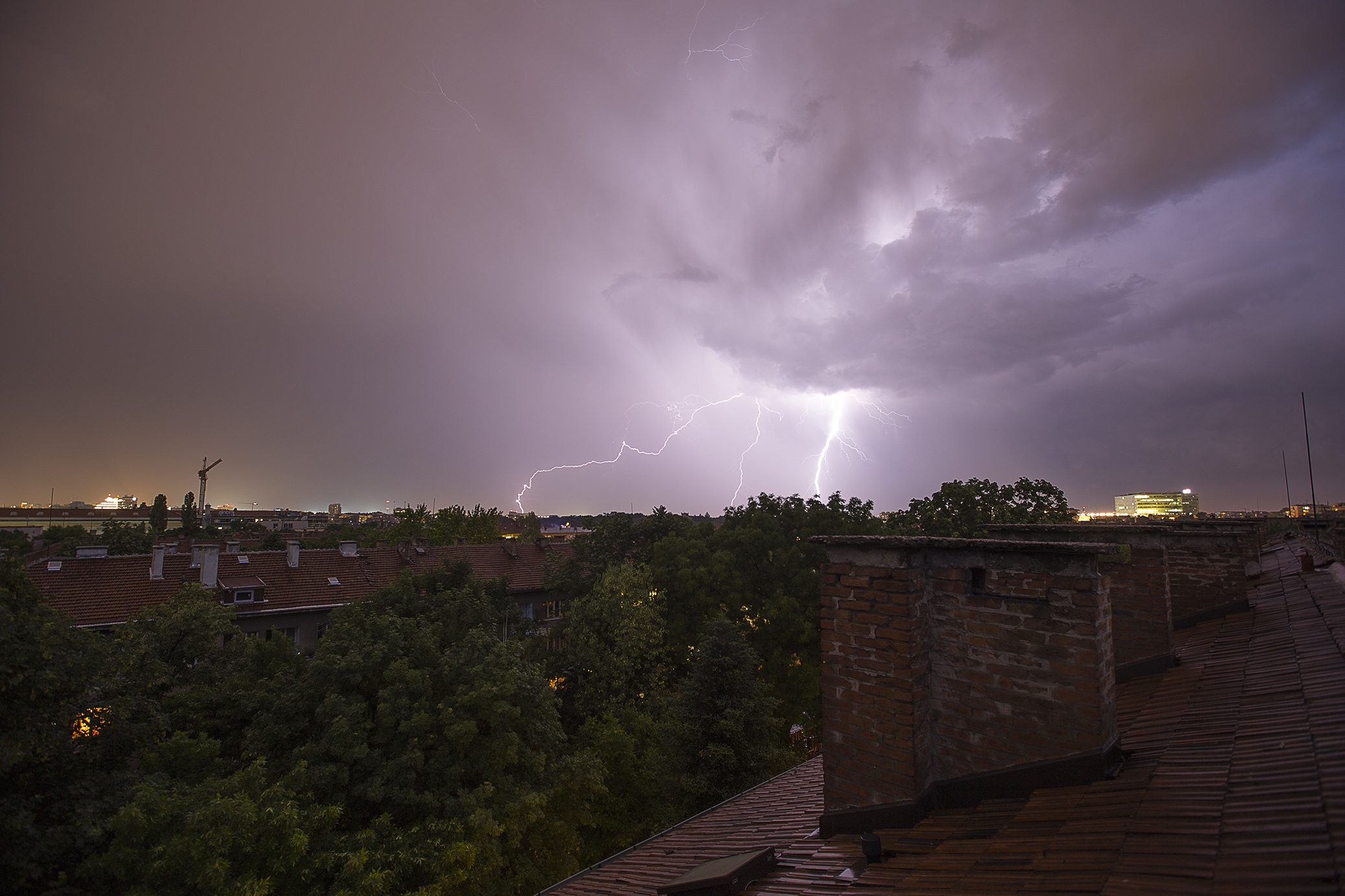 I was just touching down in Sofia when from the plane I was able to see the storm in the distance. Already in the cab I knew it would be if not ideal conditions, then at least pretty great so I knew this was the opportunity and got ready. As soon as I stepped into my flat, I got my camera out and headed towards the roof. And voila!