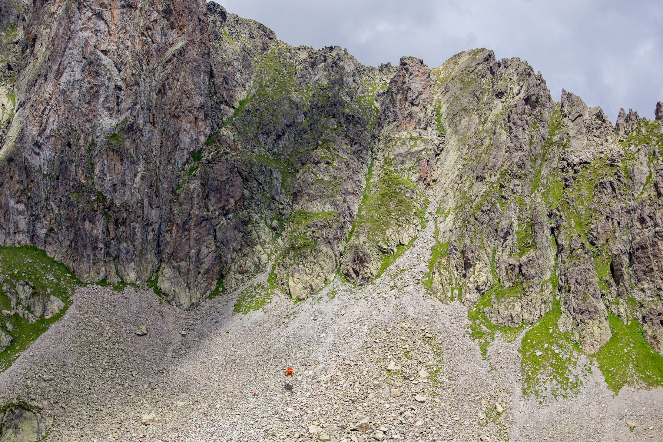 At one point we heard a helicopter fly by really closely (normally they stay way above us) and saw it attend to someone who was probably injured. What piloting skills to get this thing so close to the ground! Notice the scale of the rock face here, crazy.