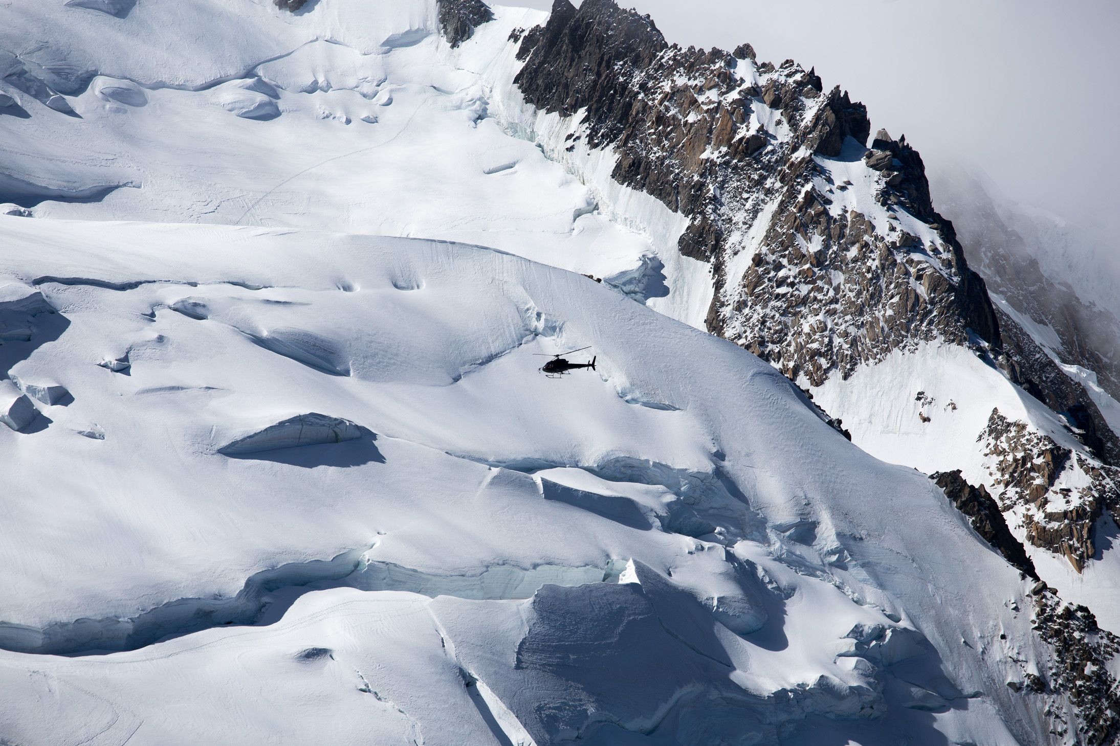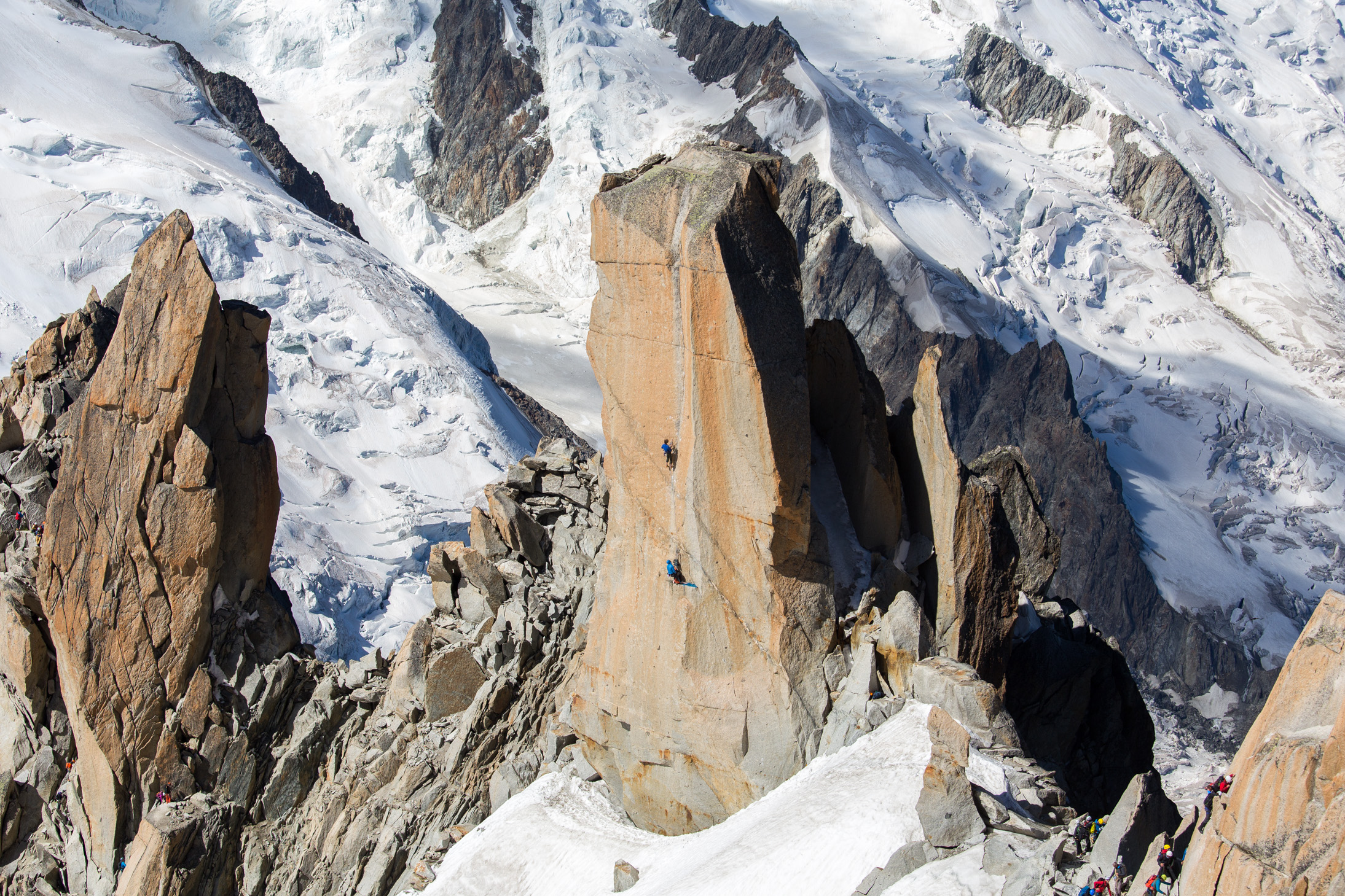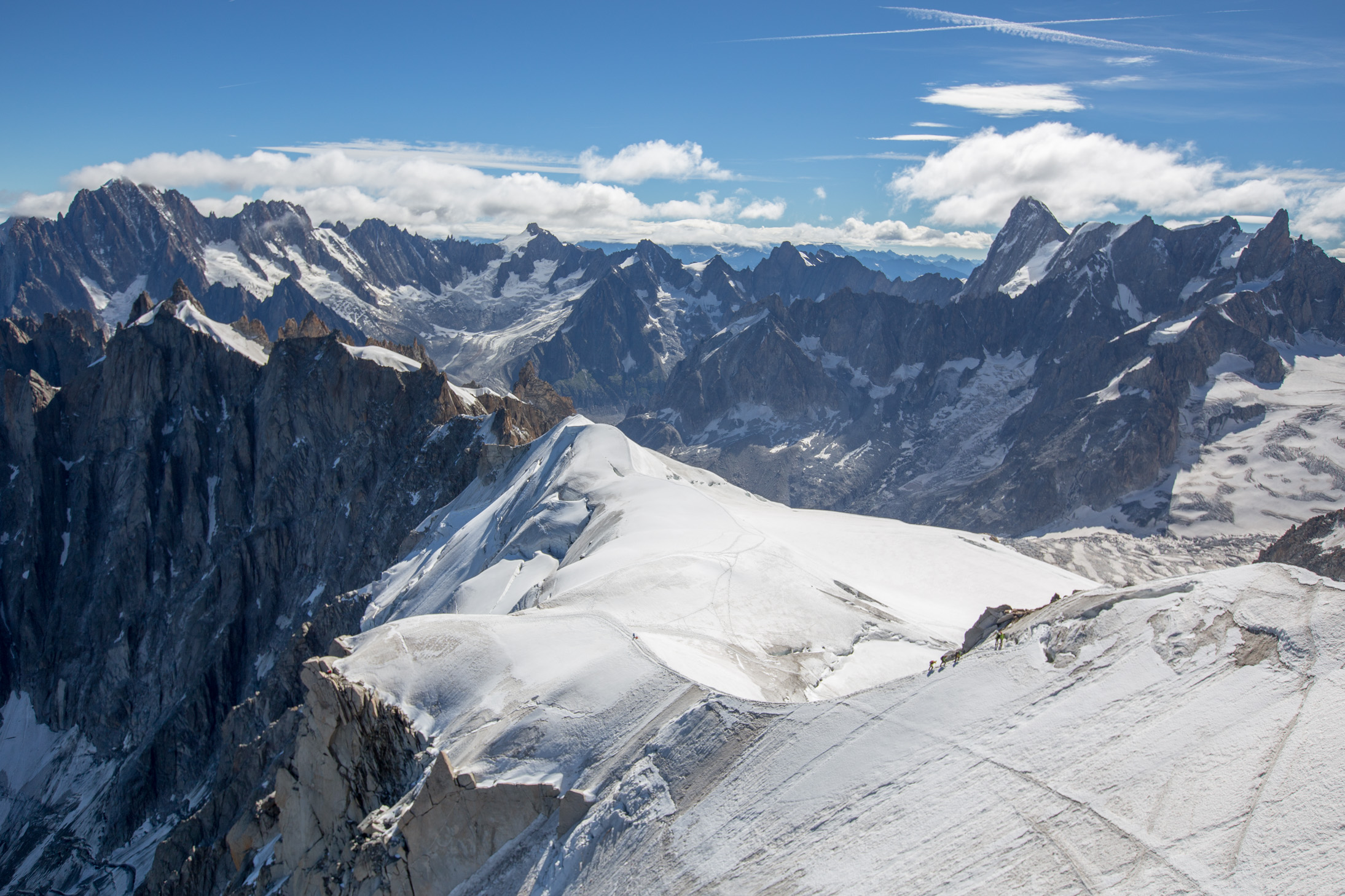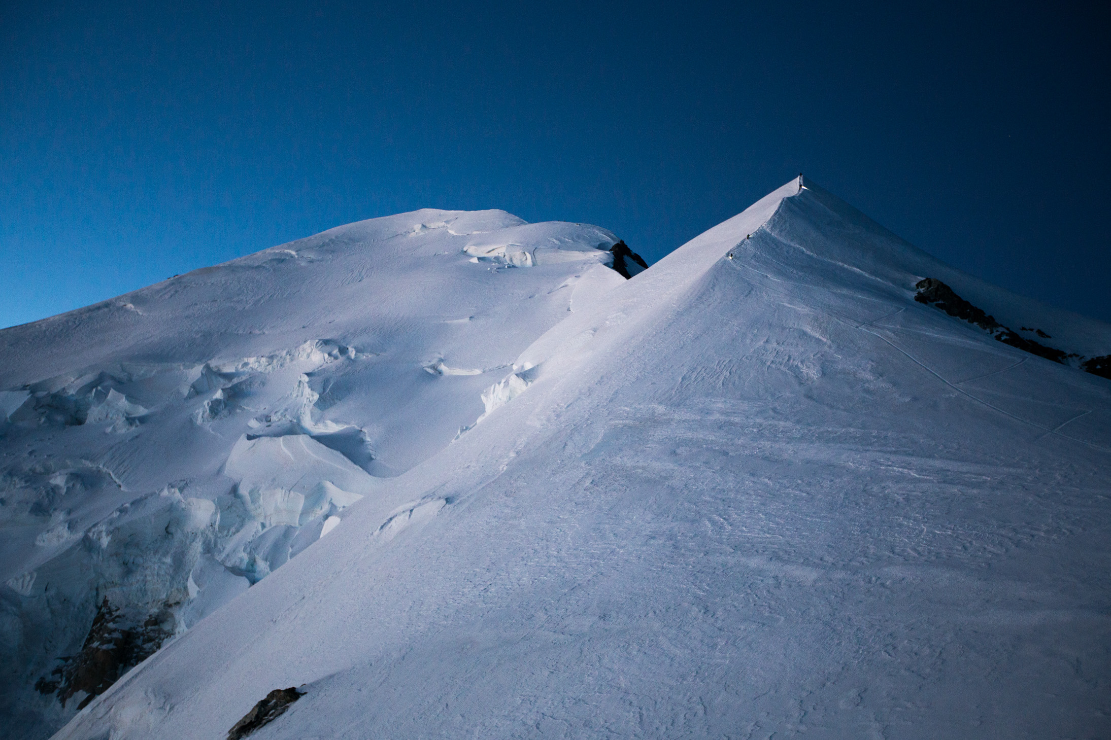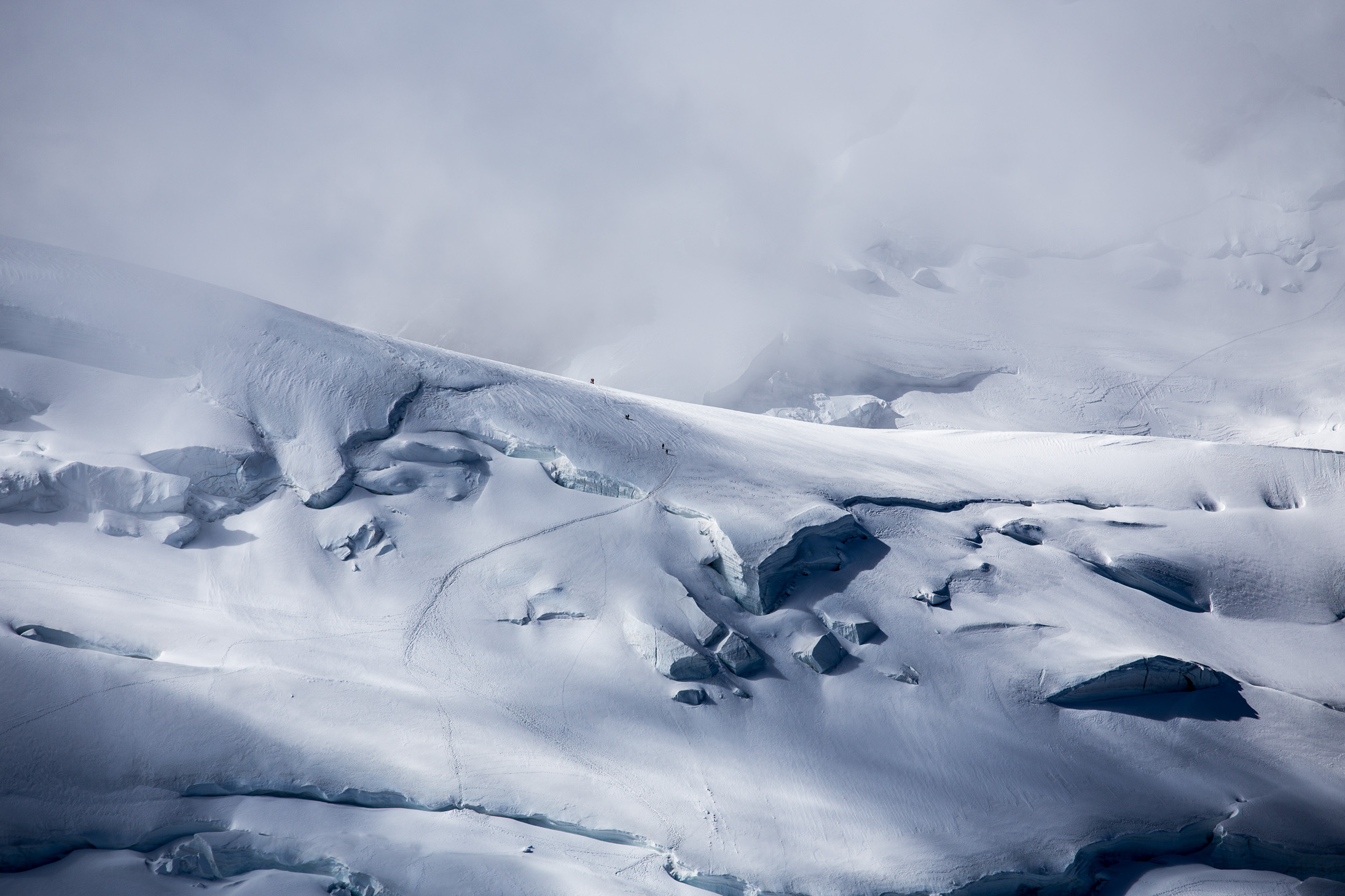 When you get high up (we’re at 3,842m here), you are much closer to the ice and the photos just show you the grandeur of nature. You can see the tiny dots that are people crawling up on their way to Mont Blanc — the route from Aiguille du Midi is far, far more technical than the one I took. And a lot more dangerous, just look at what these guys are doing!