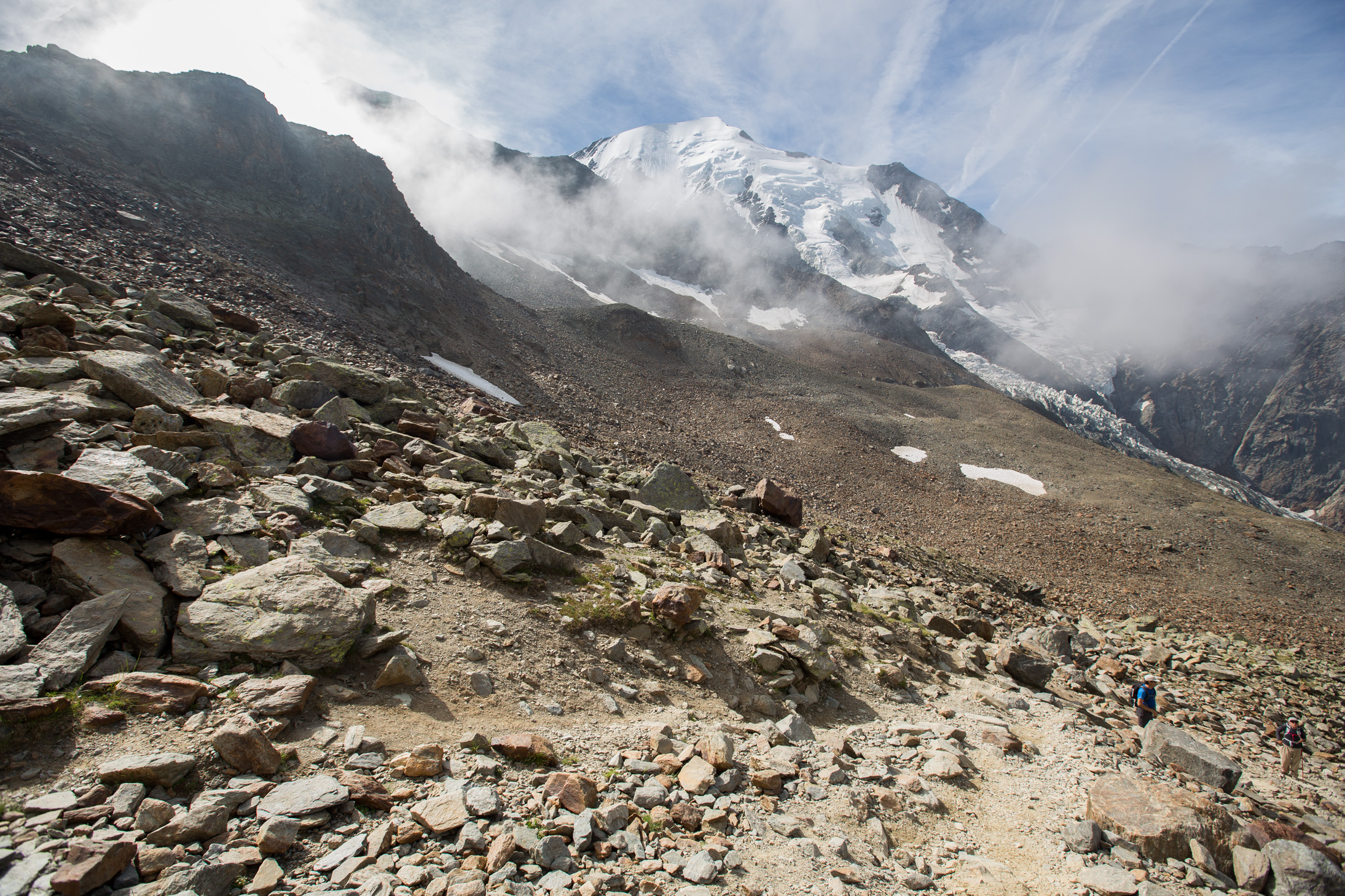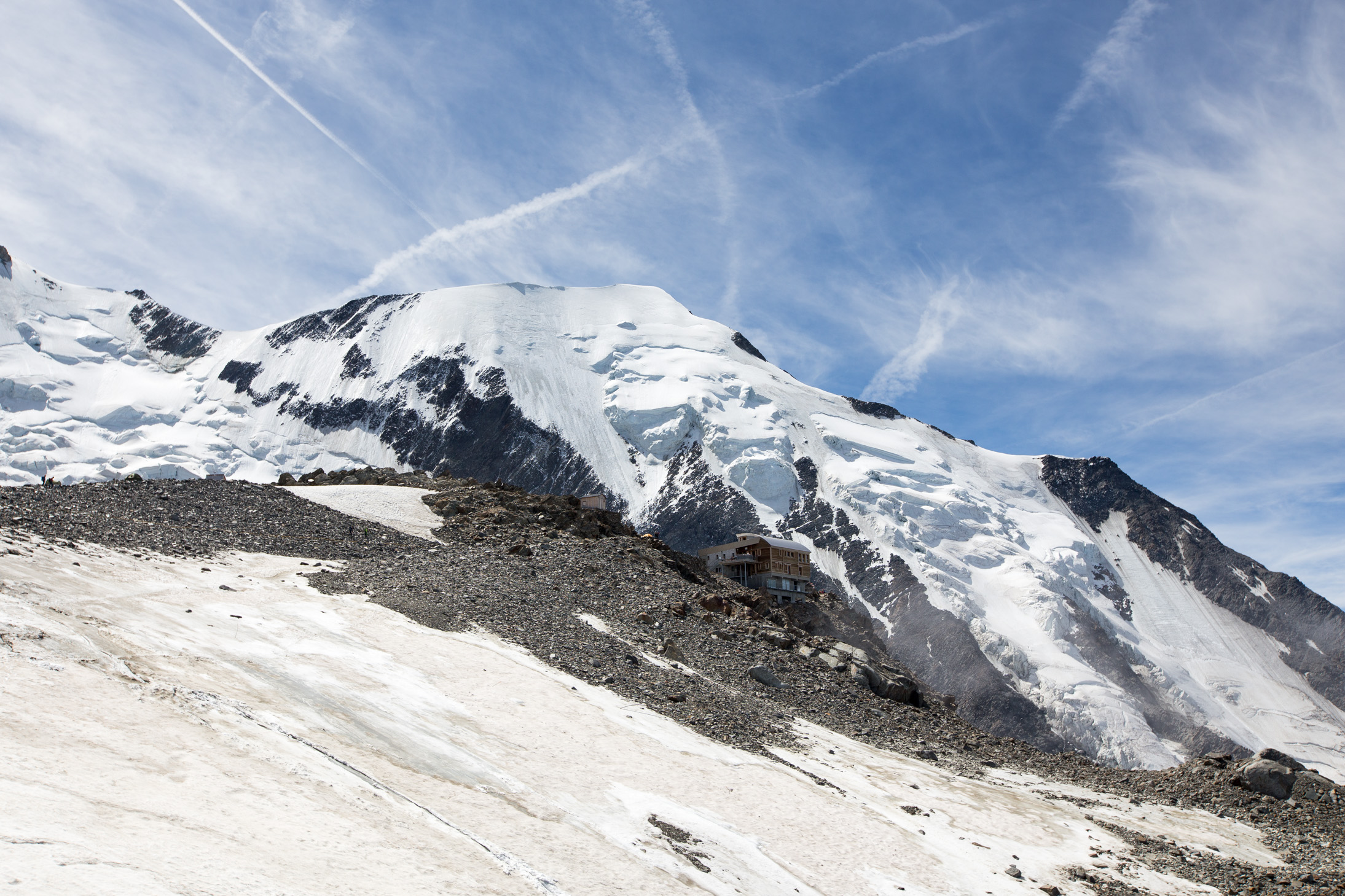 After a couple of hours, we reached the Tête Rousse refuge, which is located right next to a Glacier with the same name at an altitude of 3,167 m. One way to reach the top is to start from here, but the lower altitude means the summit day would be a much bigger push.