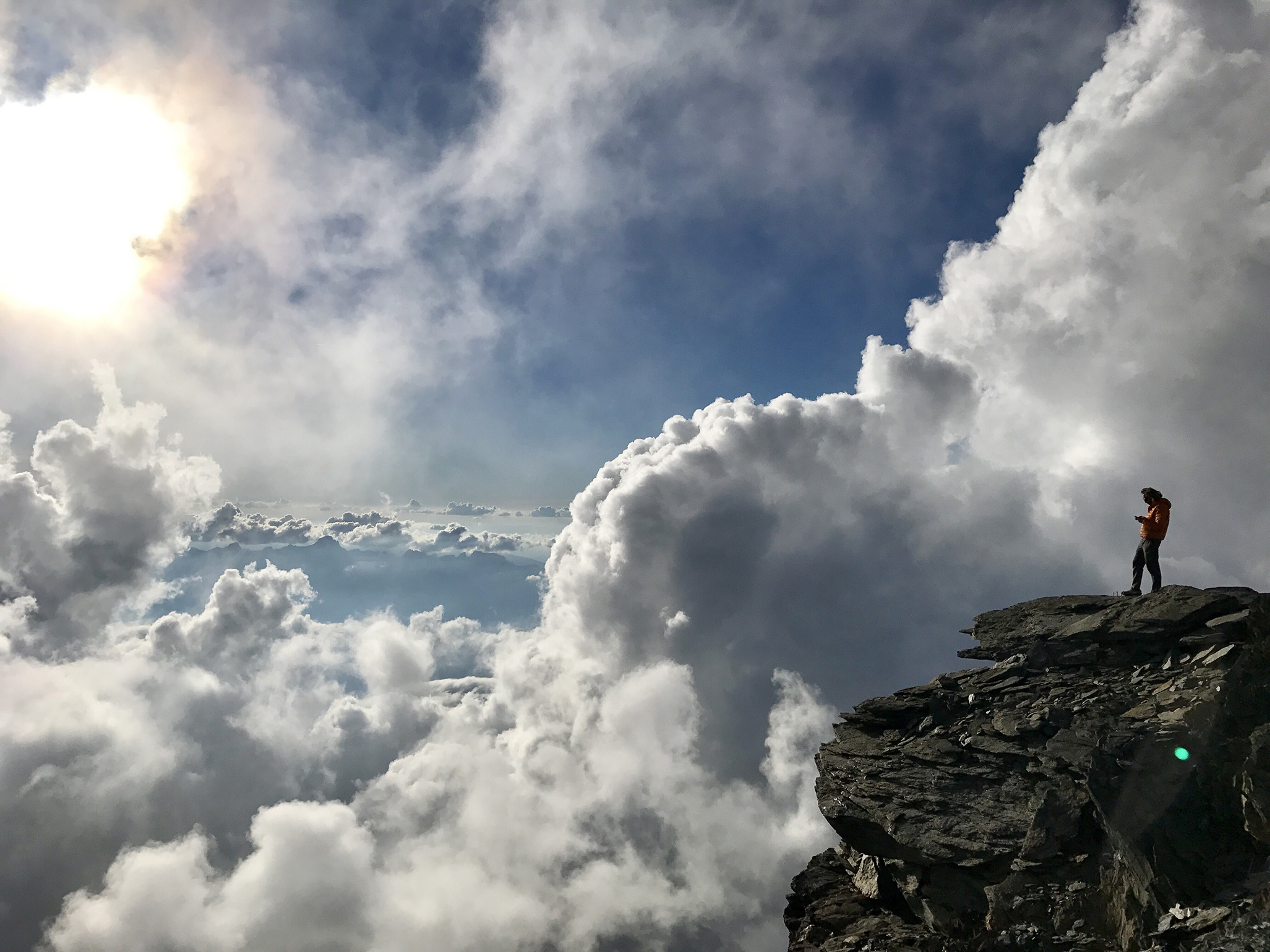 Above the sea of clouds, what a nice way to spend your 10-15 min at the top. But we’re only half way done so without wasting too much time, we headed down.