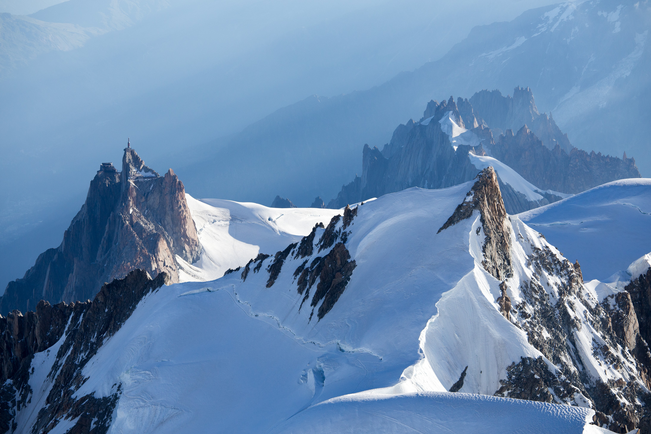 A lot of people (and pretty much all local guide companies) use Aiguille du Midi as a testing ground, putting on ice climbing equipment and walking around, as you can see here. Pretty great view of some 3,500m+ peaks in the background.
