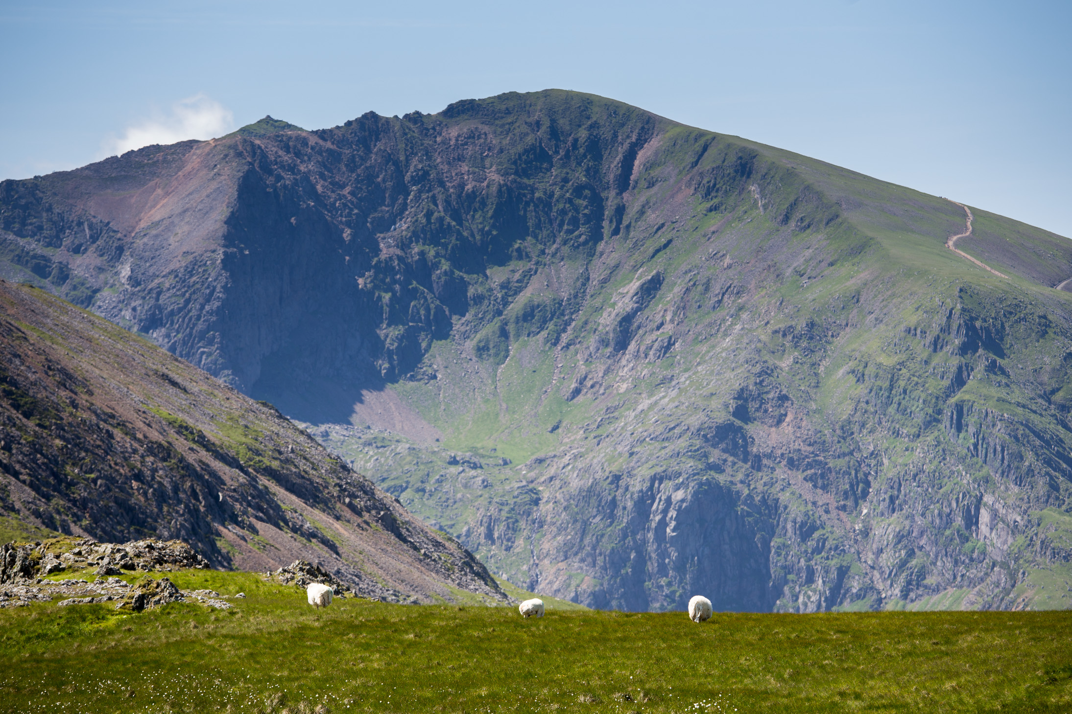 Looking back at the Snowdon massif with some lovely sheep in the foreground.