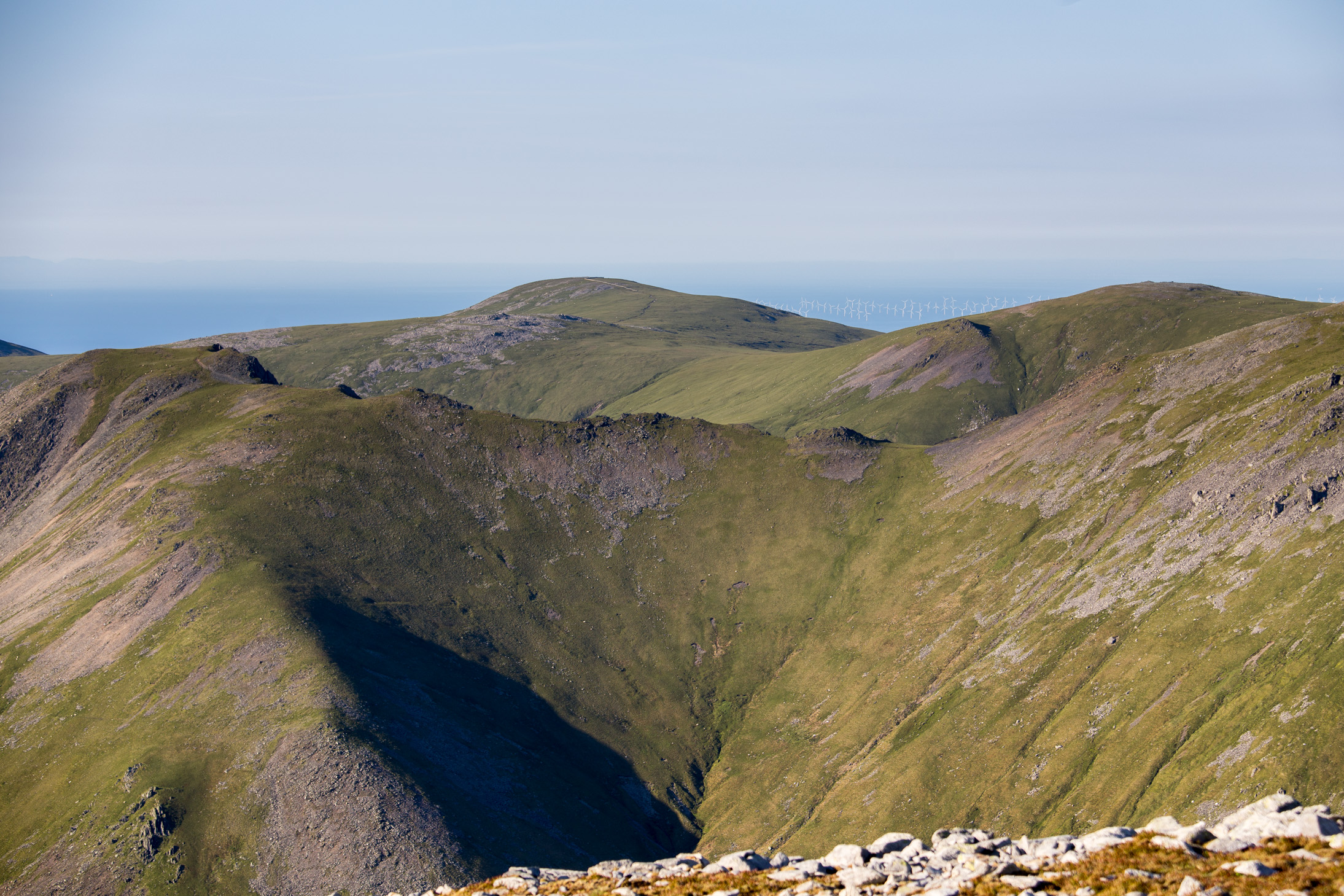What you see here is the 10th peak Pen yr Ole Wen (first of the 3rd range and the final big climb). It’s a lot steeper than the photo shows and the almost 700m ascent really takes the wind out of you after having walked for close to 12 hours. You start from the bottom right and wiggle your way close to that ridge line.
