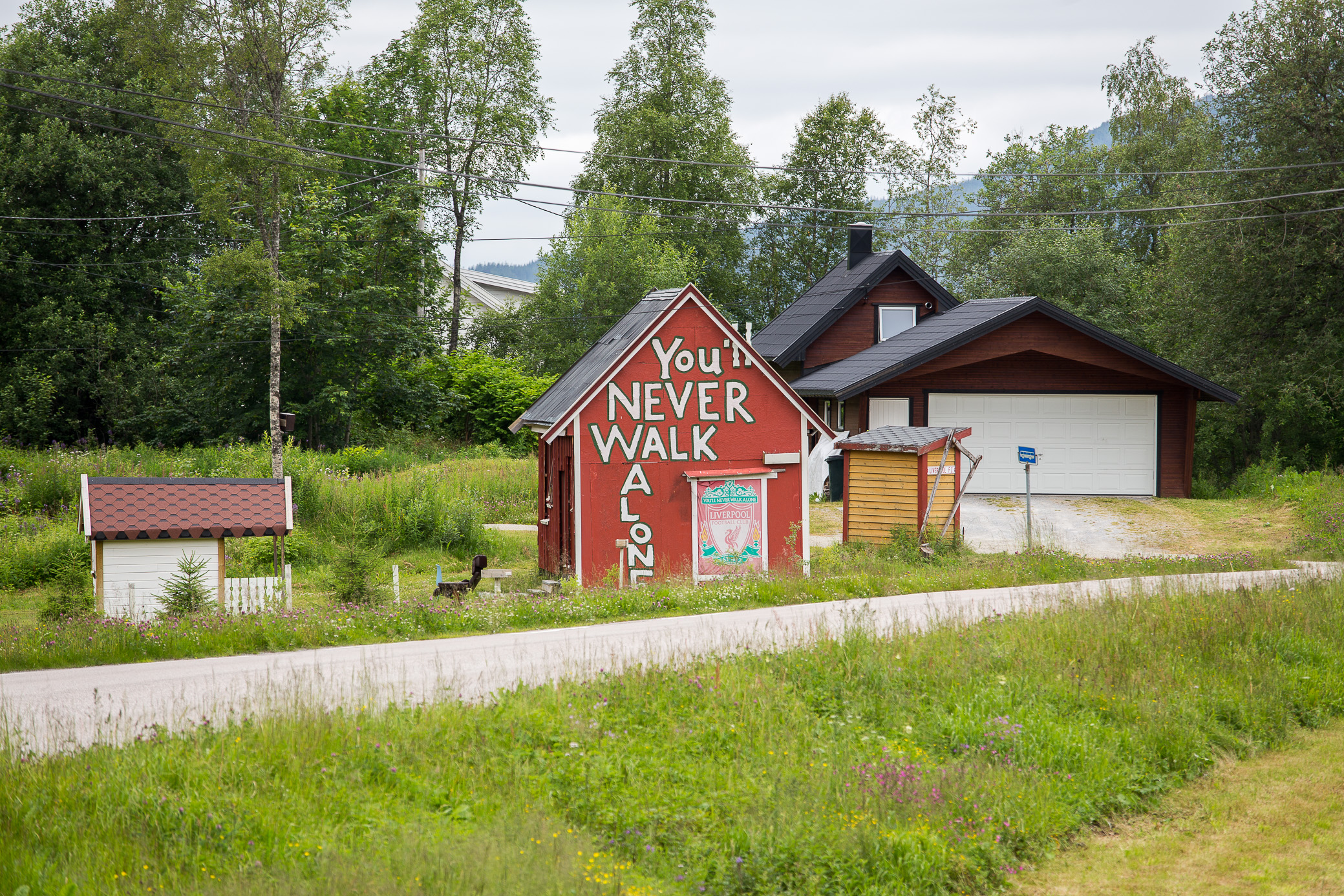 Just a remote little village in the middle of nowhere, northern Norway. Notice the attention to detail with the double chimney serving as letters. Nice.