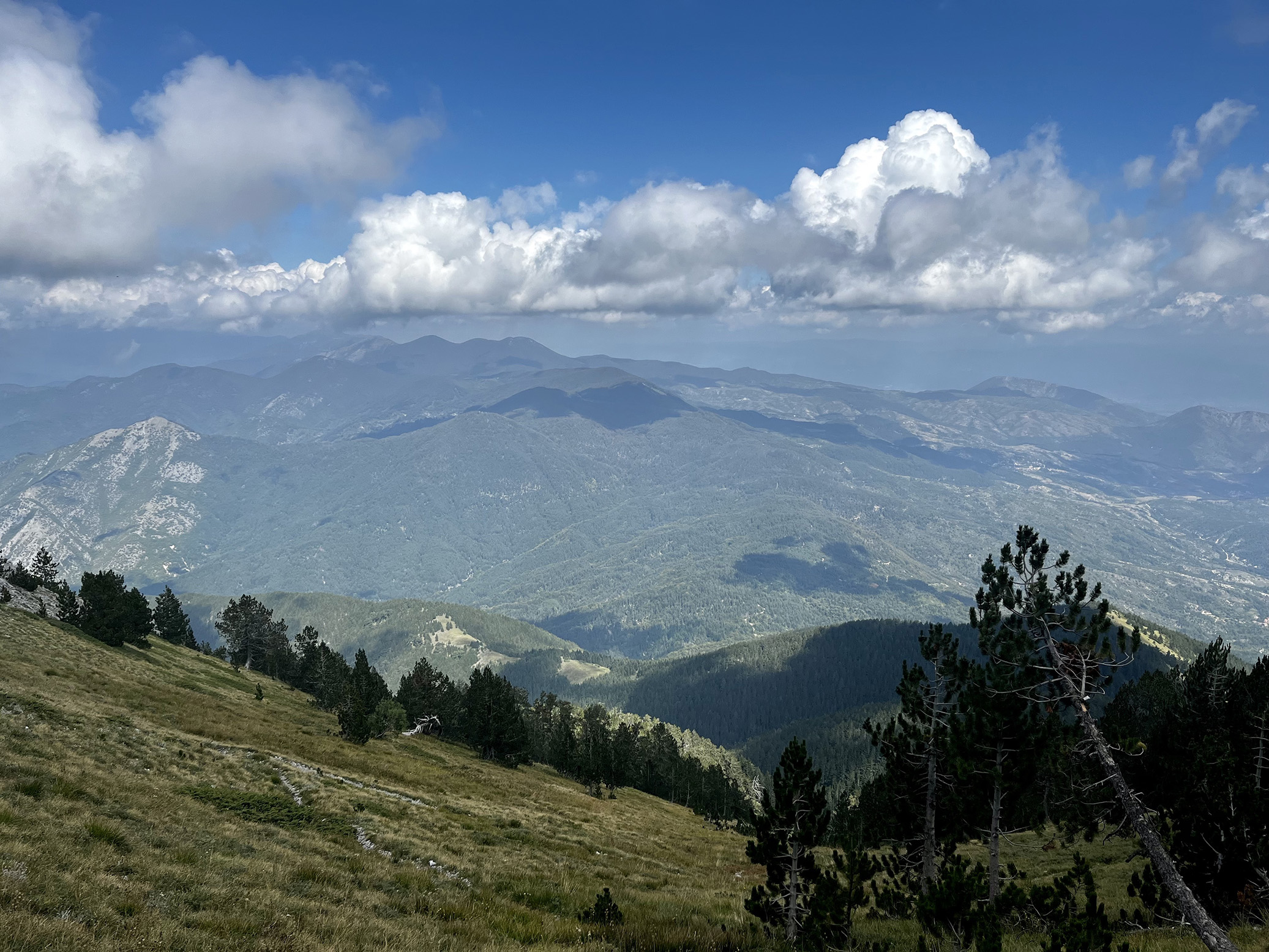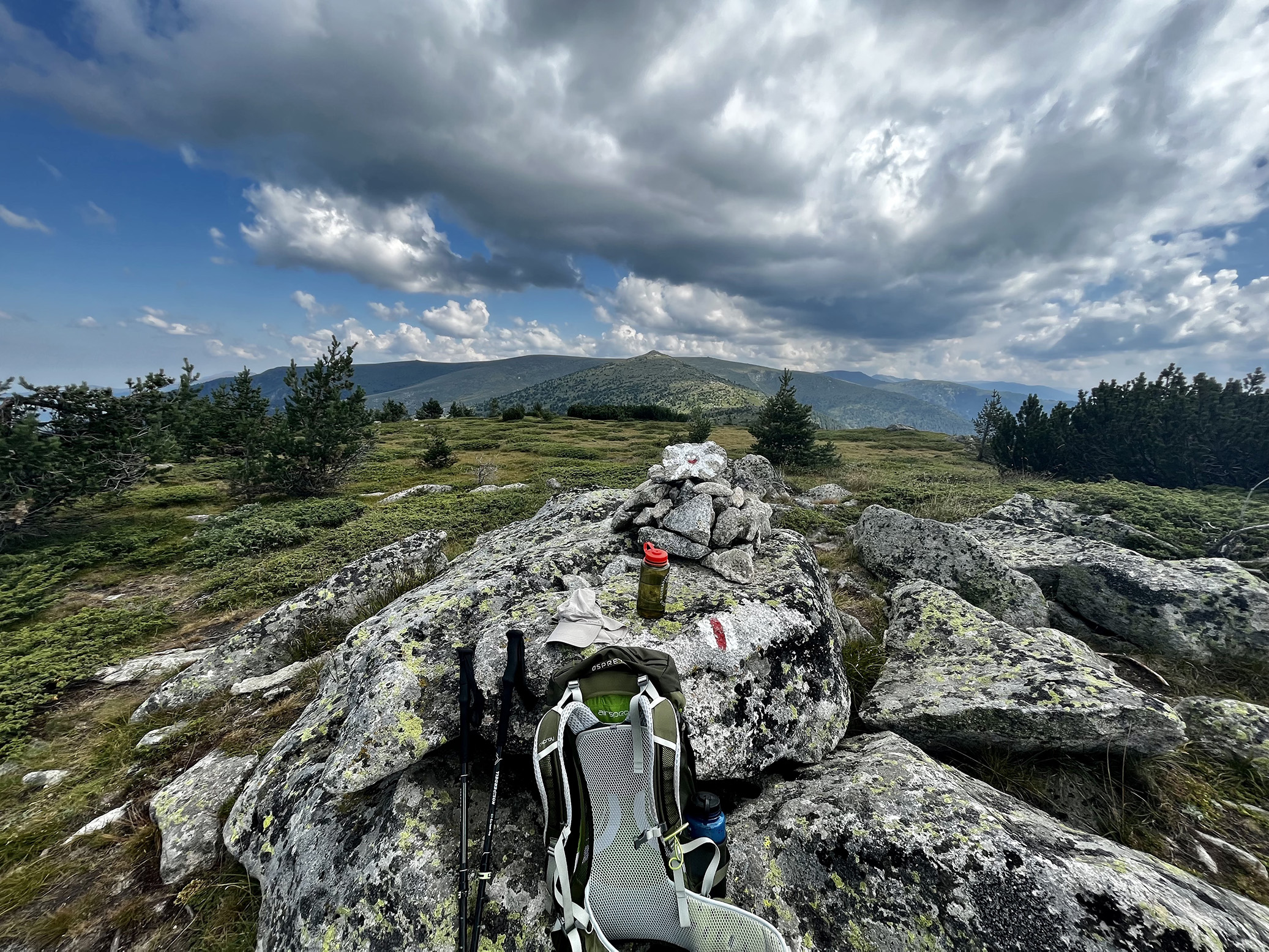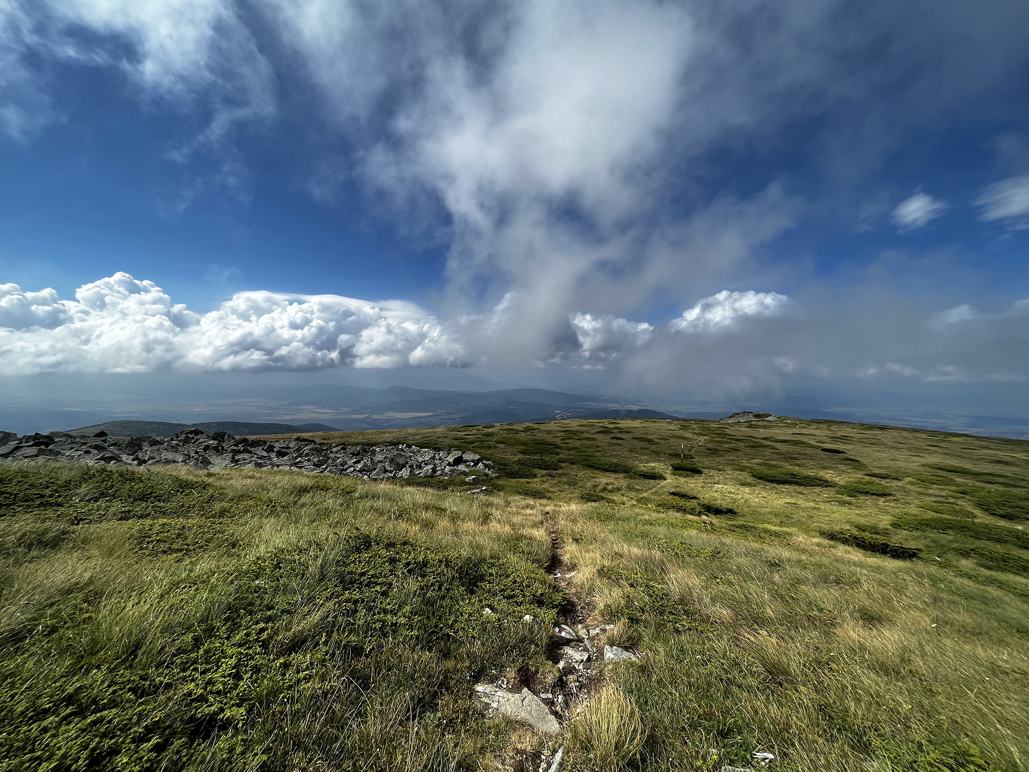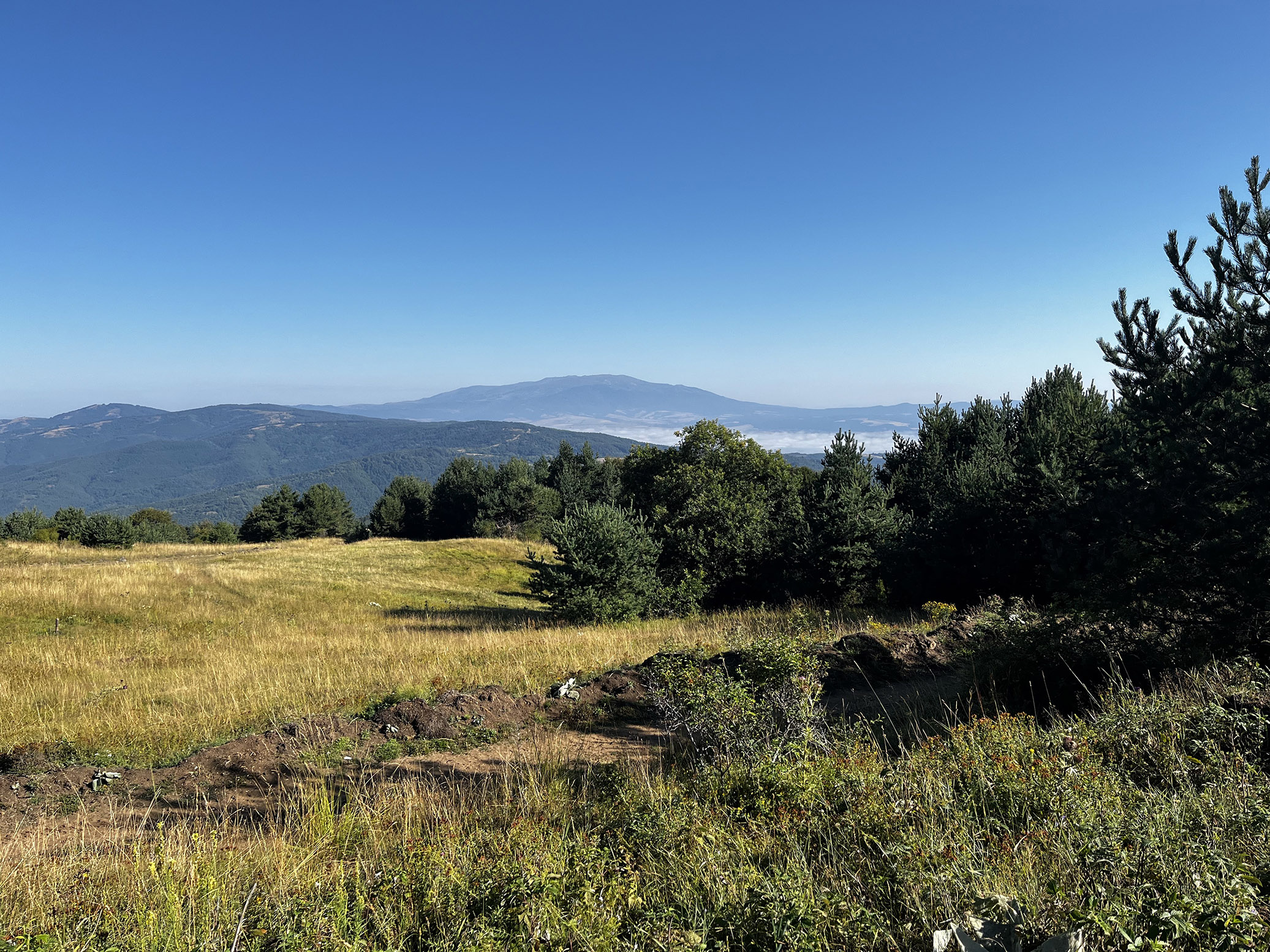 Within perhaps no more than an hour you hit an open plateau and get to look back — this is Vitosha in the distance, with Sofia on the other side of it. Really helps you put into perspective how far you’ve come in just a day.