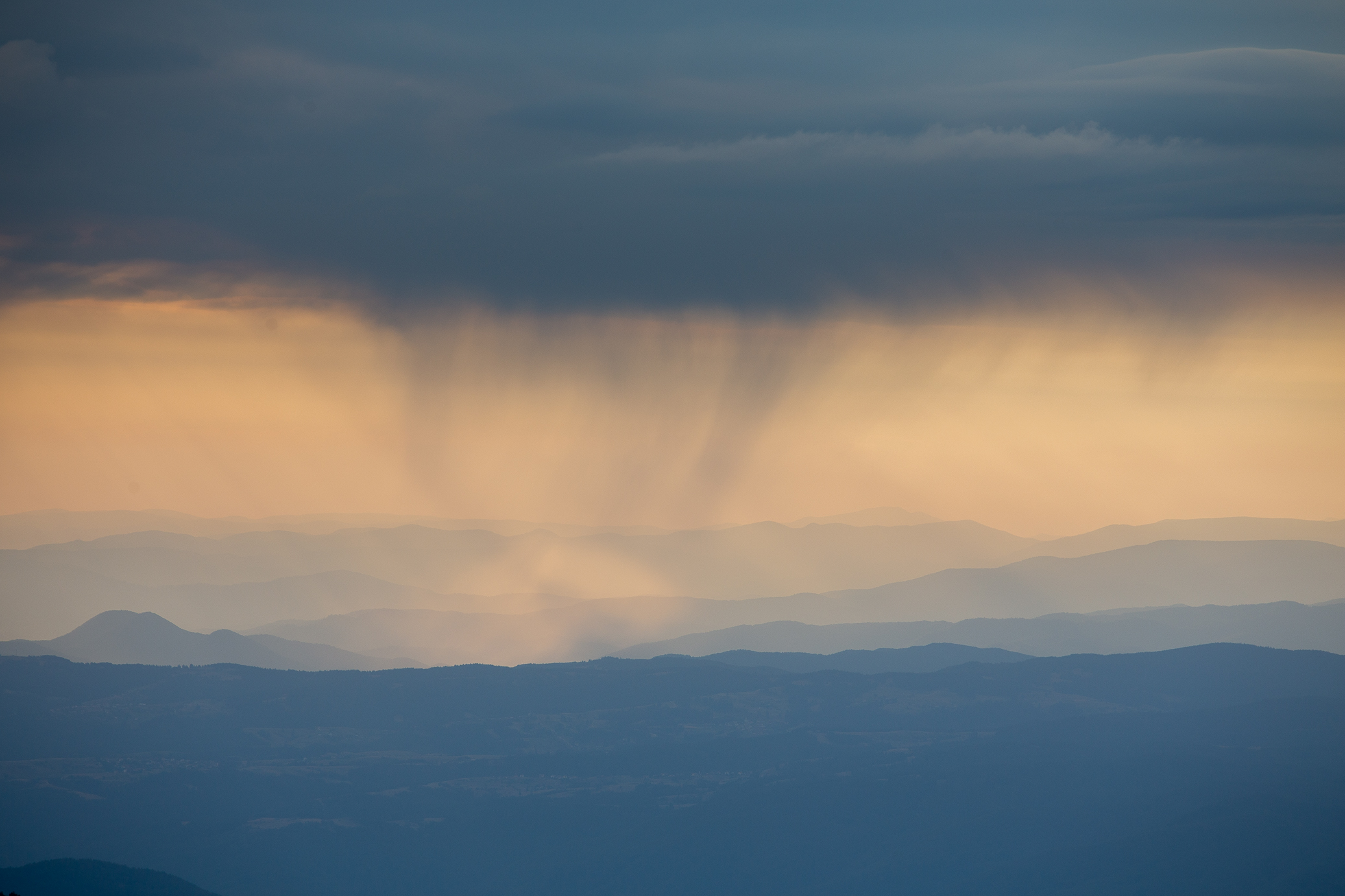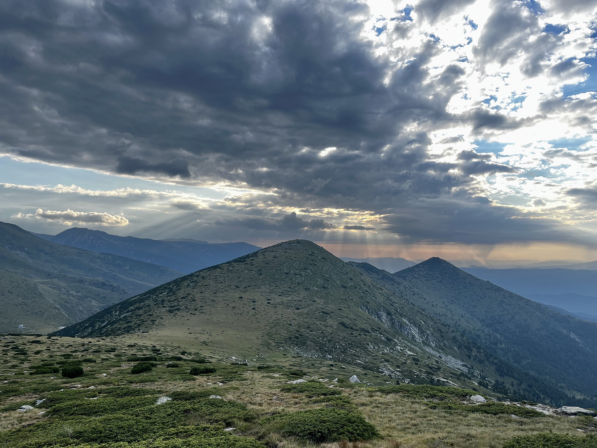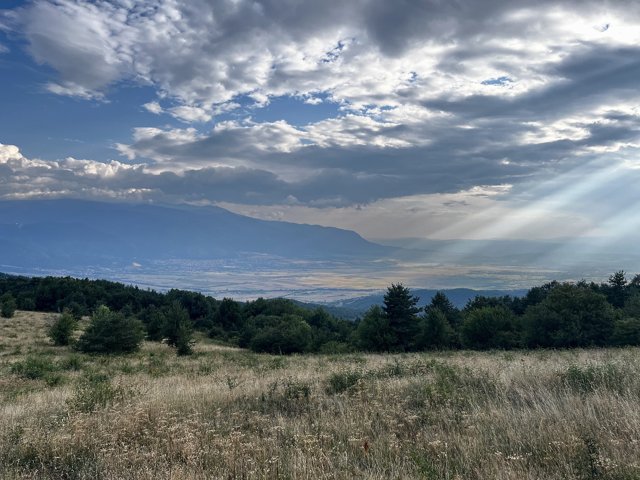 I barely took photos for the next few hours. After you descend Vitosha you immediately enter Verila mountain and, I’m sorry to say, it doesn’t have a lot to offer in terms of vistas. Lots and lots of monotonous walking in fields and dirt roads. It’s probably the least fun day of the lot. But almost at the end of it, I got rewarded with this beautiful view — the last-ish rays of the sun poking through the clouds and the view of Rila mountain in the background. A good one to close out the day. Well, I still had another couple of hours to get to Klisura perhaps, but let’s not the facts get in the way of the good story 😅