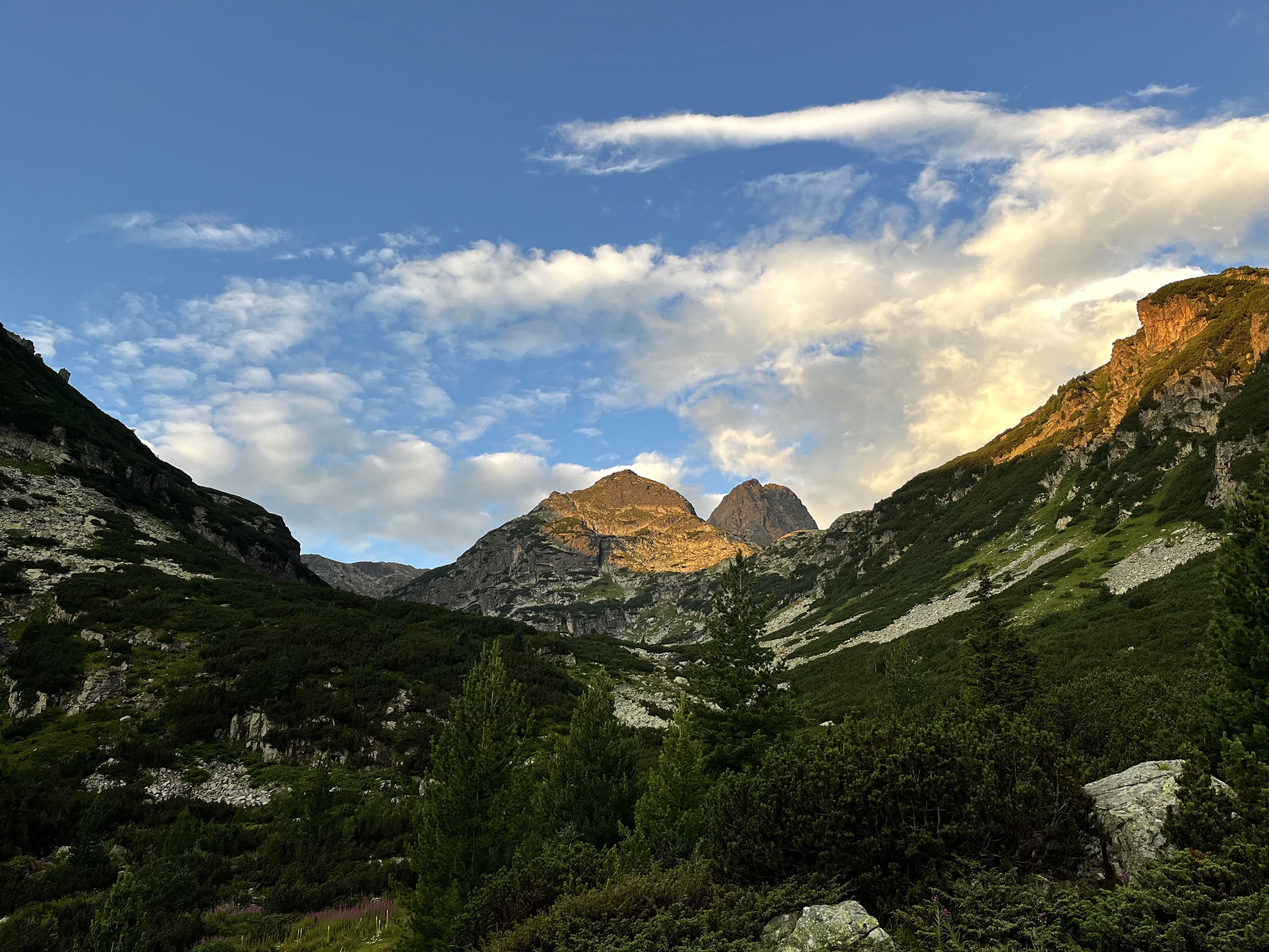 Another monster day ahead of me, not that I knew it when I left. I wanted to push to do the remainder in 2 days as I had ground to make up, but wasn’t sure whether I’d be able to reach Popovi Livadi. I focused on keeping a good pace — and enjoying the magnificent weather and views. below is Vihren from the other side. This is not the face you descend, it’s the one of the left side. Really nicely lit up by the morning rays.