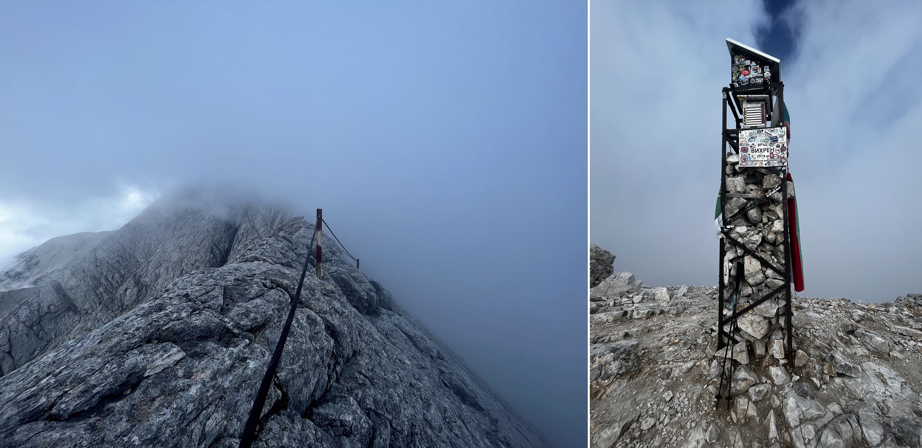 All of a sudden the weather opened up a bit, literally for a couple of minutes, and Vihren revealed itself in all its 2,914m (9,560ft) glory. What a view! I’ve climbed it perhaps close to 20 times and it never gets old. The tiny tiny dots at the top are people — just crazy. Favorite shot of the trip.