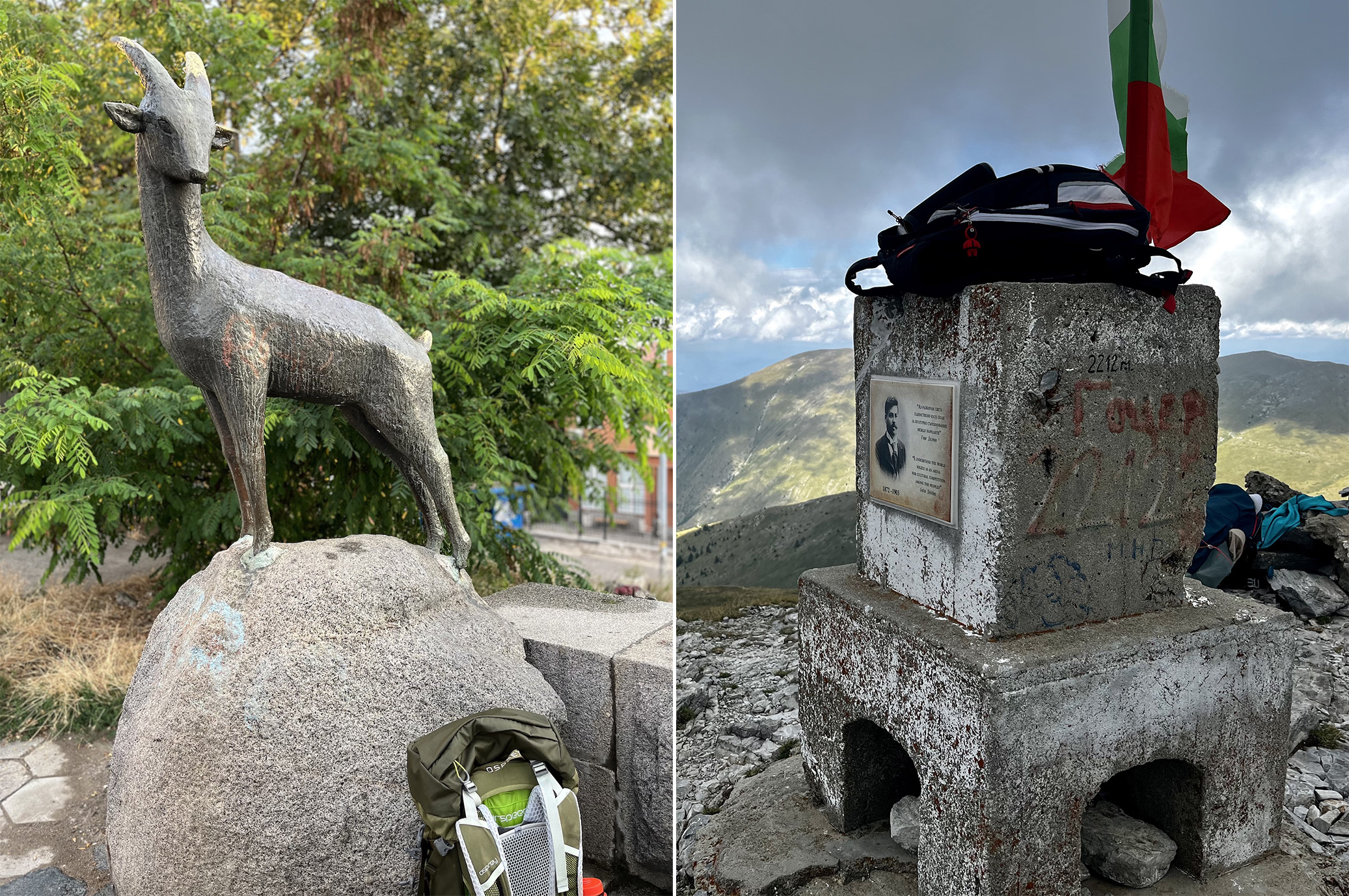 This time this is really it — the goat statue at the start of E4 in Dragalevtzi (Sofia) and the pyramid atop Gotsev Peak (2,212m / 7,527ft). What a journey!